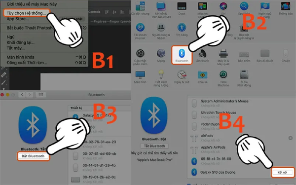 Bật Bluetooth > Tìm kiếm thiết bị > Chọn tên tai nghe