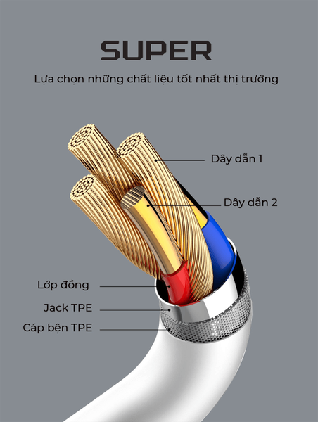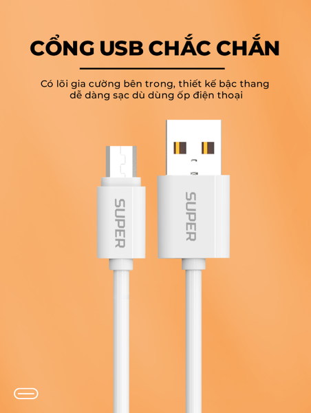 Sử dụng dây cáp điện thoại chính hãng từ SUPER sẽ giúp bạn yên tâm hơn về hiệu năng, độ bền và sự an toàn cho thiết bị mỗi ngày.