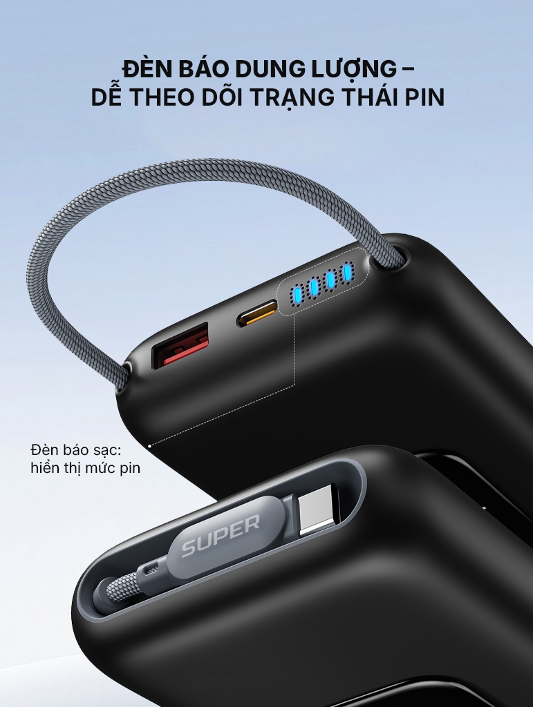 • Đèn báo dung lượng, dễ theo dõi trạng thái pin